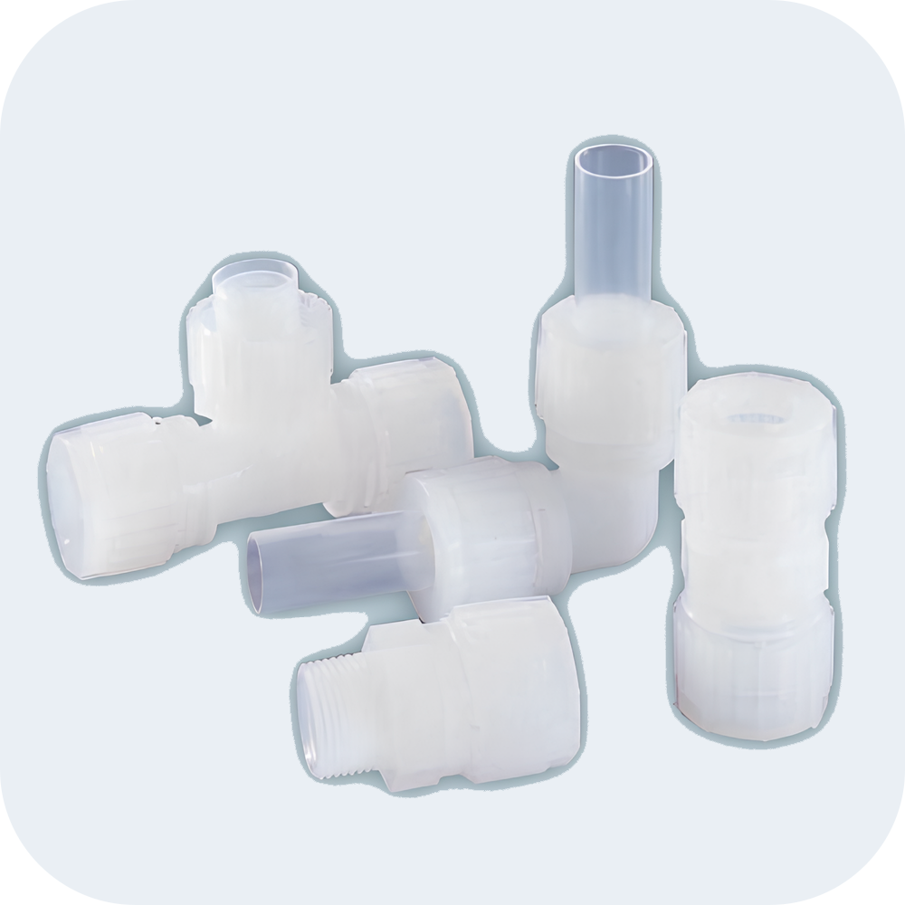 我們專注于高科技市場,特別是半導體、液晶和醫(yī)療領域。 主要提供耐化學腐蝕、耐熱和清潔的氟樹脂接頭、管件和泵。由于氟樹脂產(chǎn)品不受各種化學溶液的影響并且密封性強,被用于半導體晶圓清洗設備以及其他化學藥劑的運輸及循環(huán)設備。